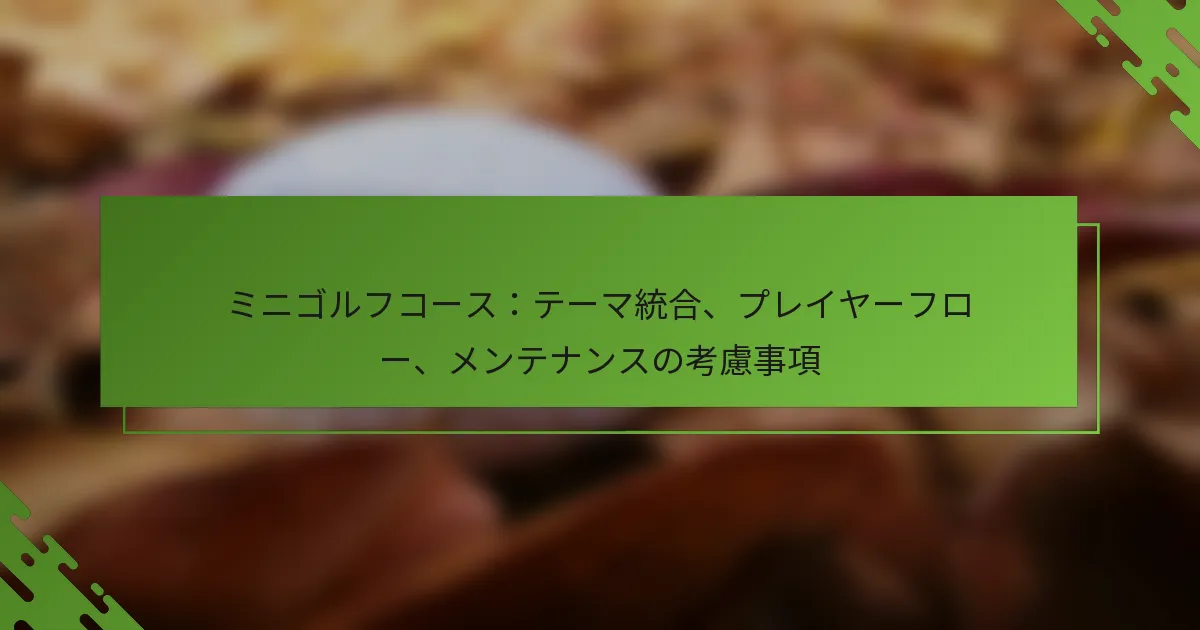成功するミニゴルフコースを作成するには、テーマの統合、プレイヤーフロー、メンテナンスについて慎重に考慮する必要があります。一貫したテーマはプレイヤーの楽しみを高め、再訪を促進します。また、よく設計されたレイアウトはコース内のスムーズな移動を促進します。さらに、定期的なメンテナンスは、すべてのプレイヤーにとって安全で高品質な体験を確保するために不可欠です。